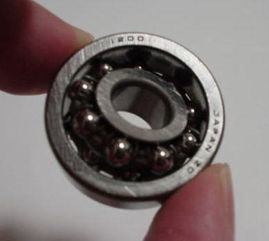 このベアリングの外形は30mmで、ちょうどいい大きさです。(出来れば20mm位のが欲しいです) それと、中がピロの様に自由に回転します。 これによりエンジンヘッドの支柱取り付け面が多少荒れていて支柱が傾いて付いたとしても、アクセルシャフトは真っ直ぐのまま支えられそうです。 ただちょっと心配なのは、エンジンルーム内に設置って事でホコリ、砂等による動作の不具合が発生するかも知れませんが、しばらく注意深く様子を見ます。